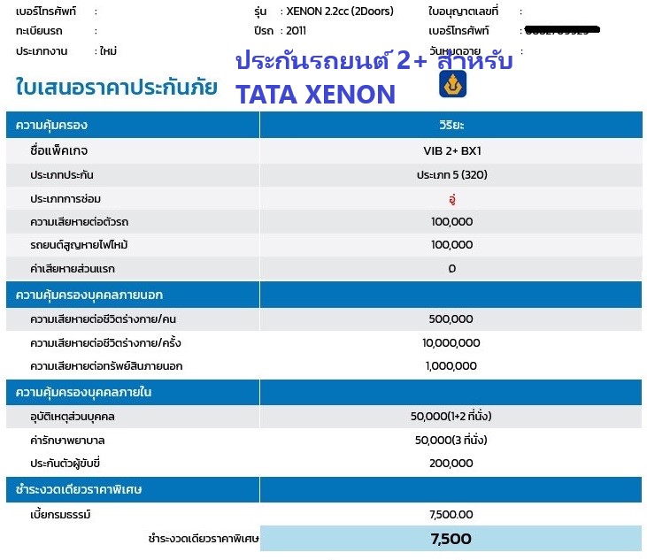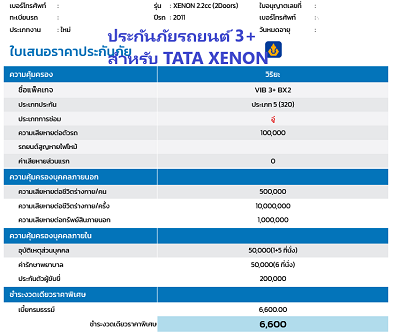 -เลตราคาประกันรถกระบะ 2 ประตู TATA XENON 2DOOR ชั้น 3+