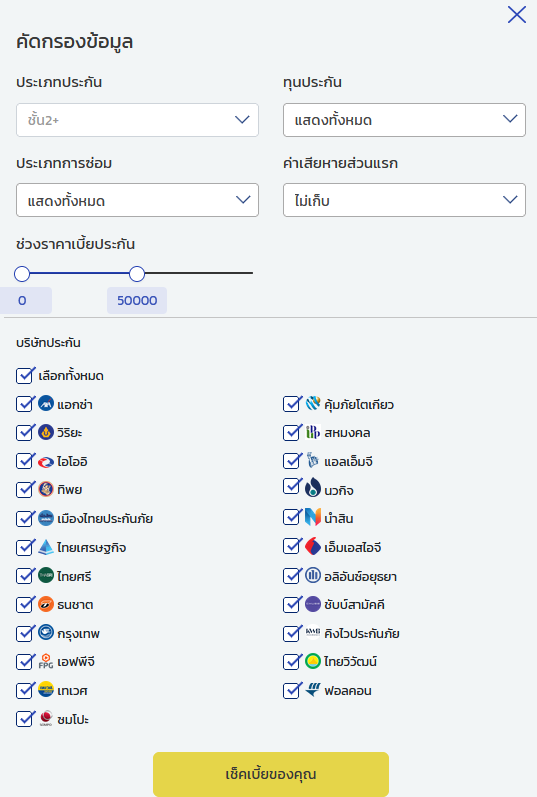 -ทำให้เราประหยัดค่าเบี้ย เเละเลือกเปรียบเทียบเเผนประกันภัยได้ทุกบริษัท รู้เบี้ยทุกประกันใน 5 วิ